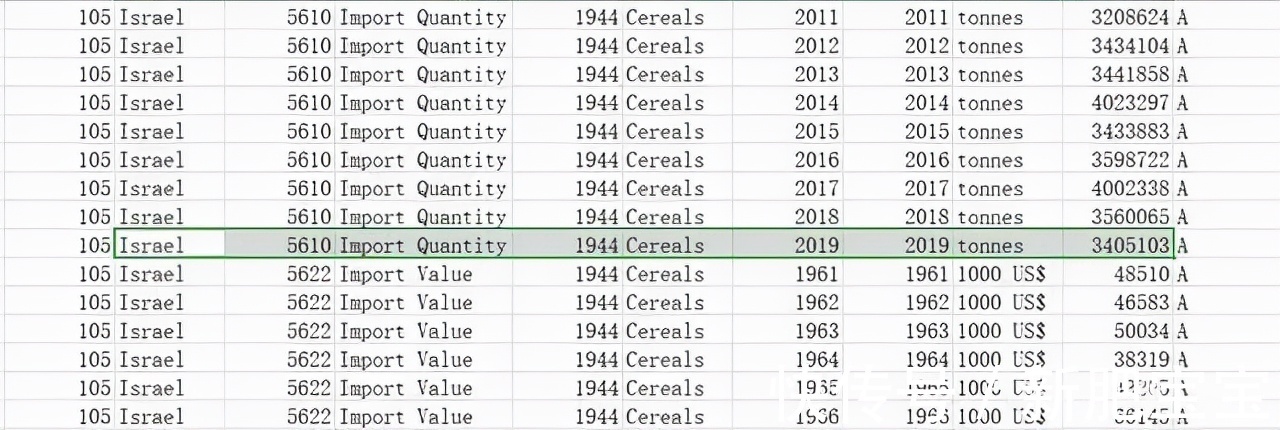 ▲图:2019年以色列进口谷物340.51万吨 图片来源:FAO