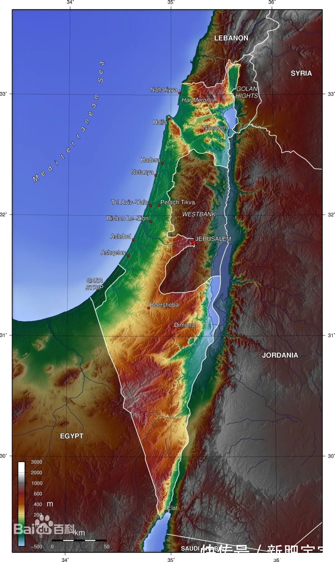 以色列位于亚洲西部,是亚、非、欧3大洲结合处,1948年5月建国,实际控制面积约2.5万km2。